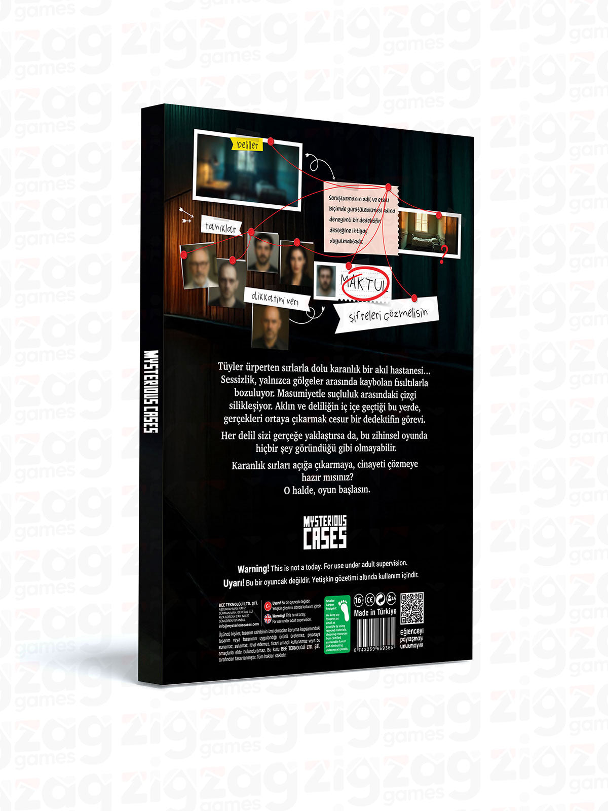 Vaka dosyası, delil kartları, şüpheli profilleri, notlar ve kural kitapçığı