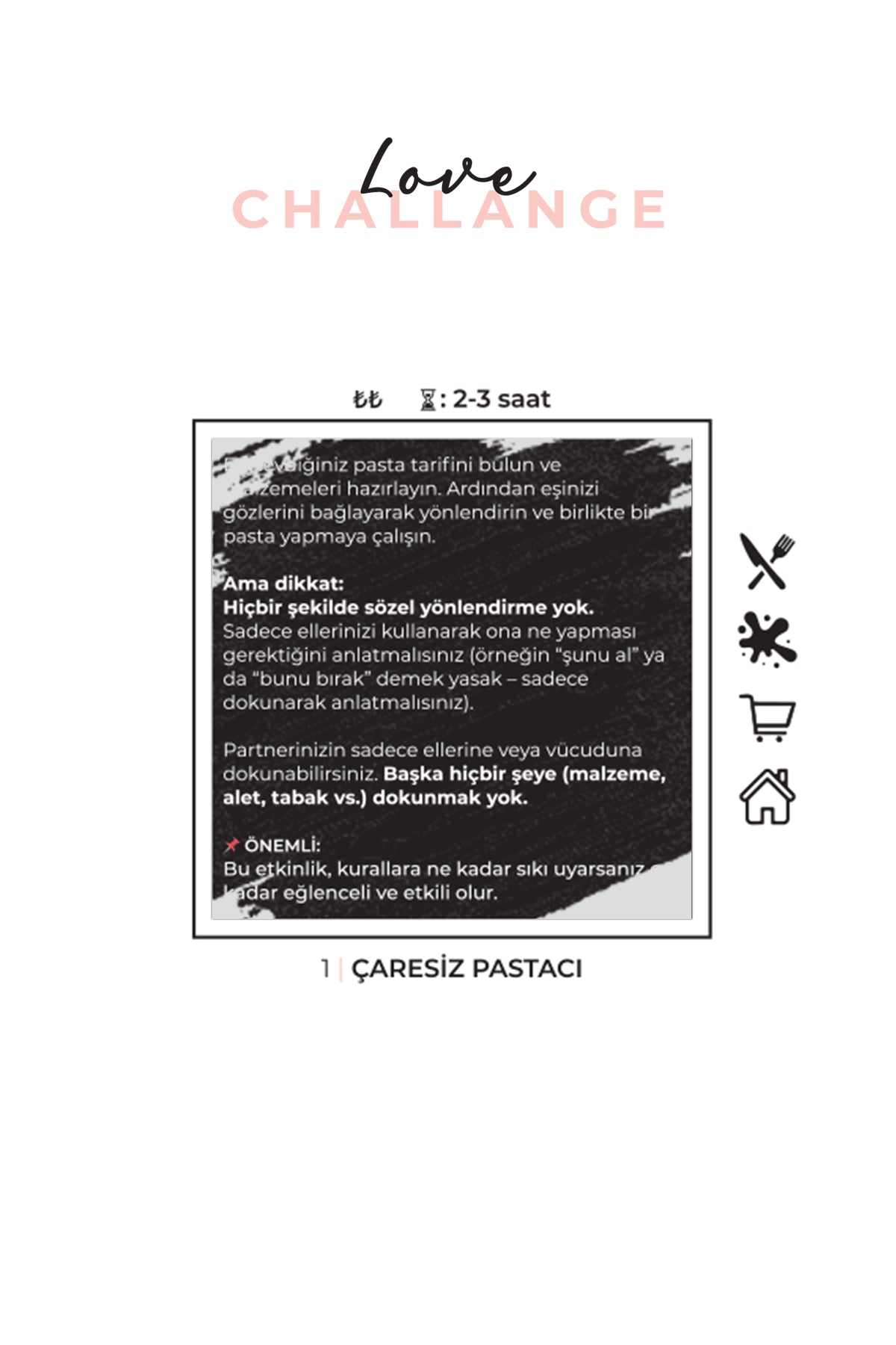 Love Challenge kısa sürede bitirilecek bir ürün değildir. İçerisindeki görevler basit ve sıradan dateler olmadığı için her biri gerçekten bir deneyim yaşamanızı amaçlar.