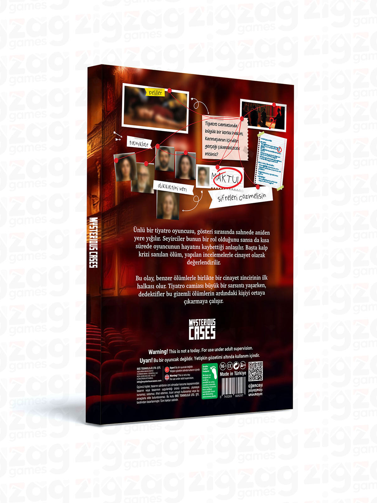 Vaka dosyası, delil kartları, şüpheli profilleri, notlar ve kural kitapçığı